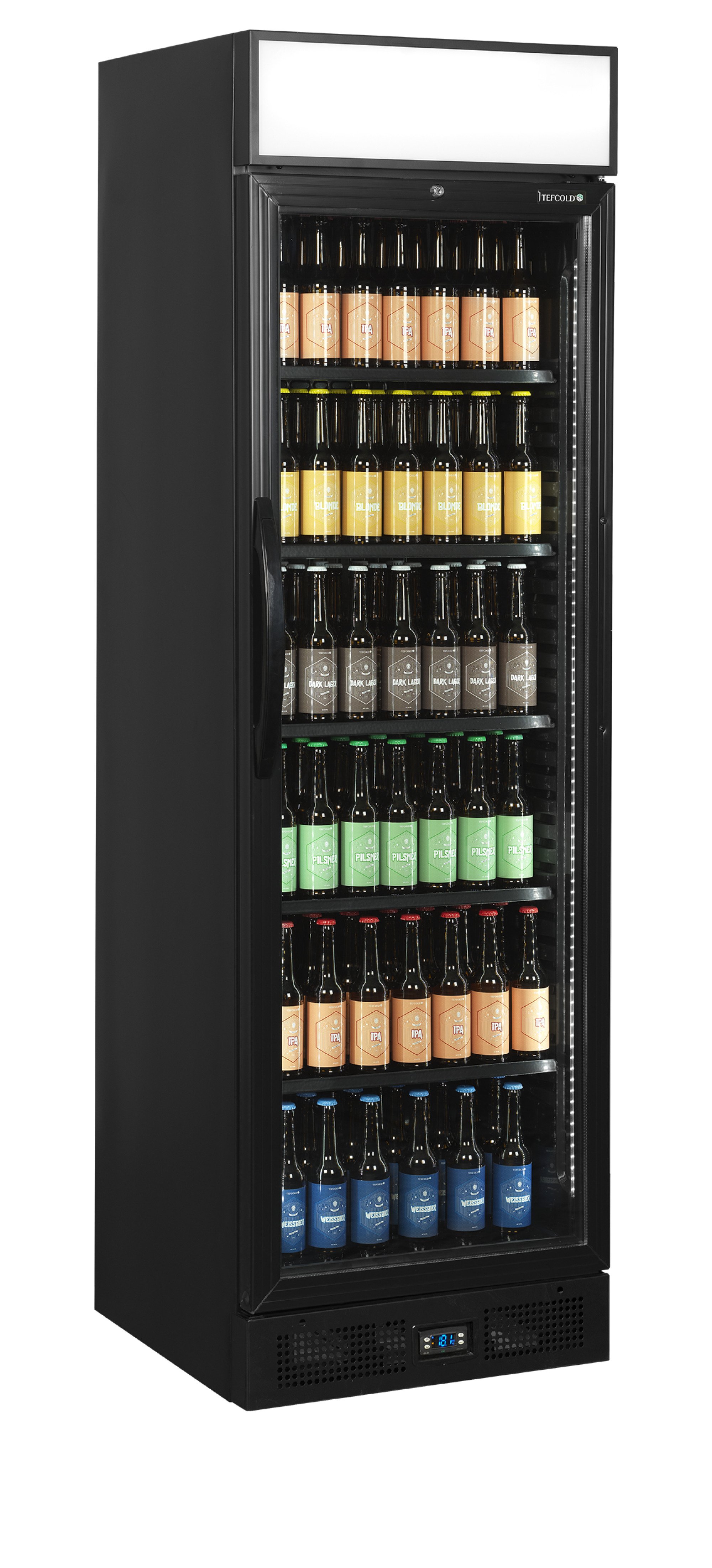 De CEV-serie is ons best verkopende assortiment flessenkoelers. De flessenkoeler heeft alles wat nodig is om ijskoude dranken op de best mogelijke manier te presenteren: een glazen deur met ledverlichting aan de binnenkant van het deurframe; verstelbare planken voor flexibiliteit; ventilatorgestuurde koeling voor een gelijkmatige temperatuur in de hele kast; en bovendien is hij ideaal voor branding. Standaard leverbaar met zowel rechtsdraaiende als linksdraaiende deuren.