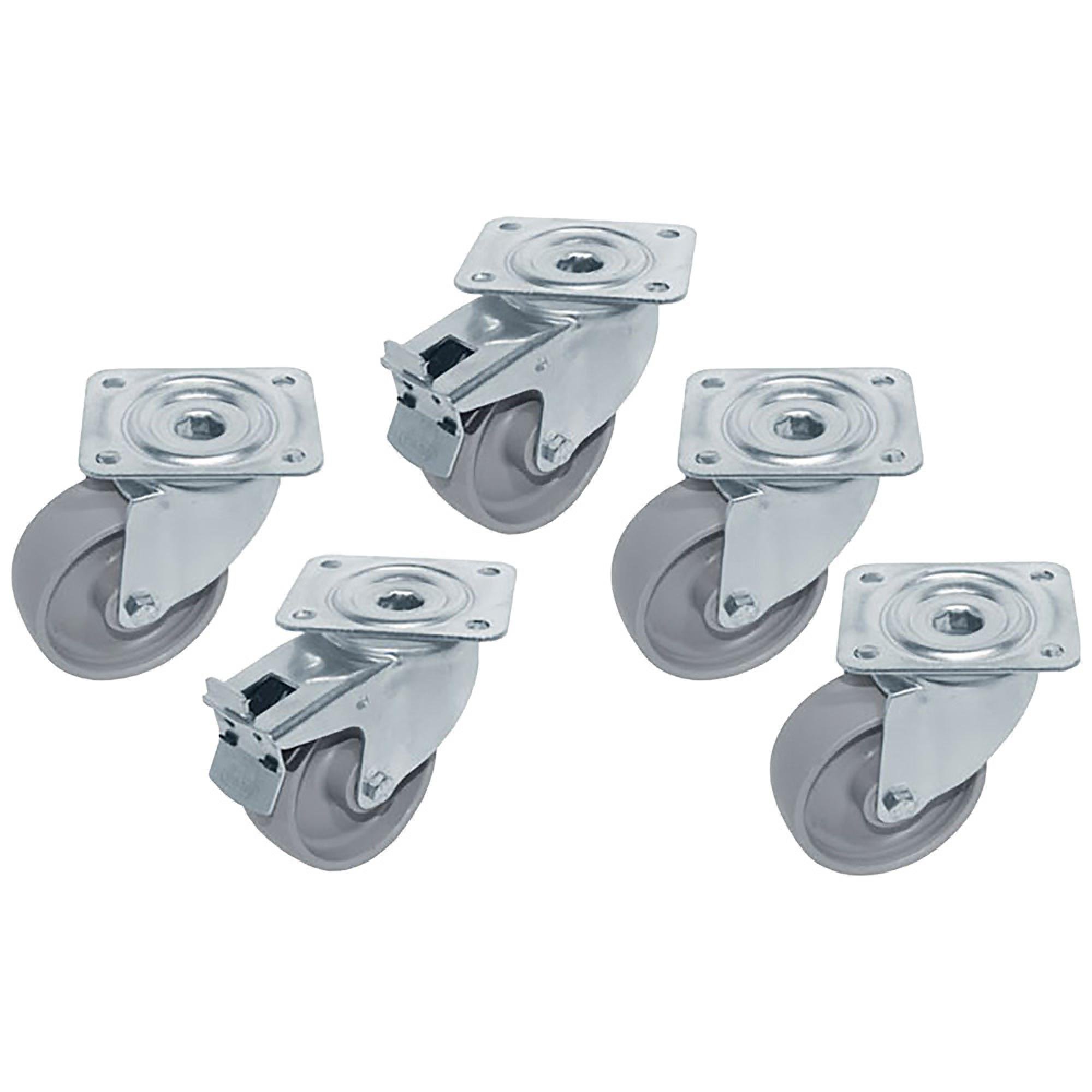 RTG6-2R | Kit 5 Roues inox pour tables, pivotantes, 2x avec freins